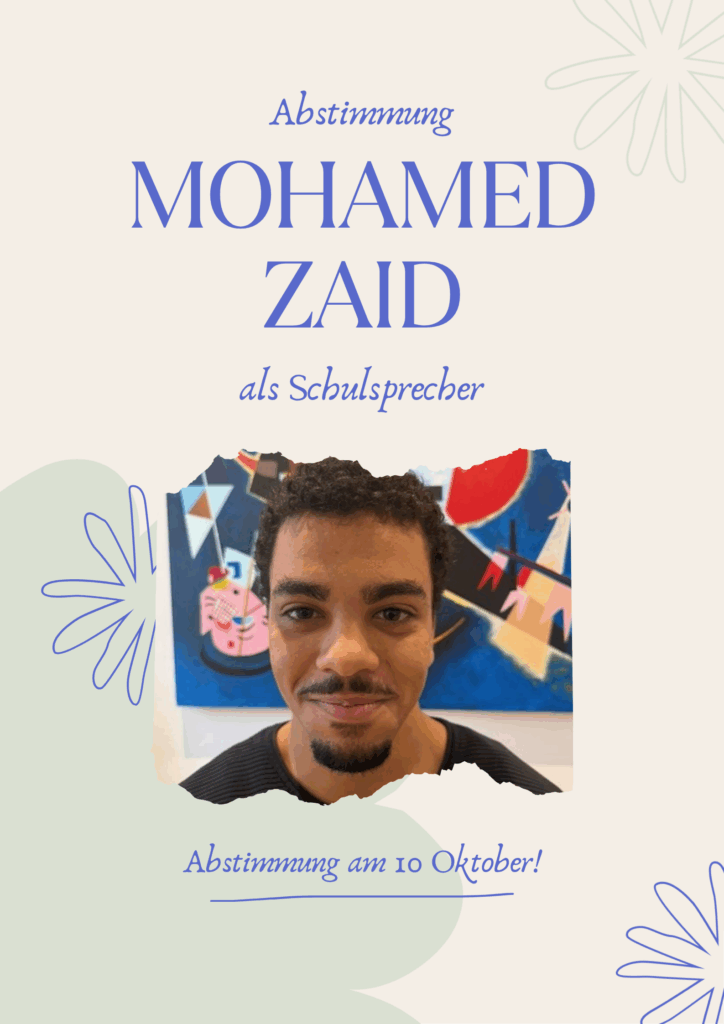 Am Freitag, den 10. Oktober, ist es wieder soweit: Wir wählen unsere neuen Schulsprecherinnen und Schulsprecher! In diesem Beitrag stellen sich euch die Kandidatinnen und Kandidaten kurz vor mit ihren Ideen, Zielen und dem, wofür sie stehen. Damit ihr euch ein Bild machen könnt, bevor ihr eure Stimme abgebt.